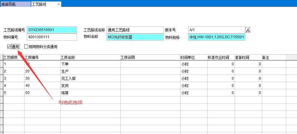 由于所有產品都使用相同的工序,因此輸入一個產品工序即可