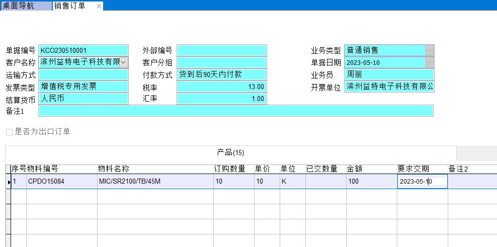基礎工作做好后,現在從銷售訂單開始完整的跑一遍流程,假設該產品已有產品標簽