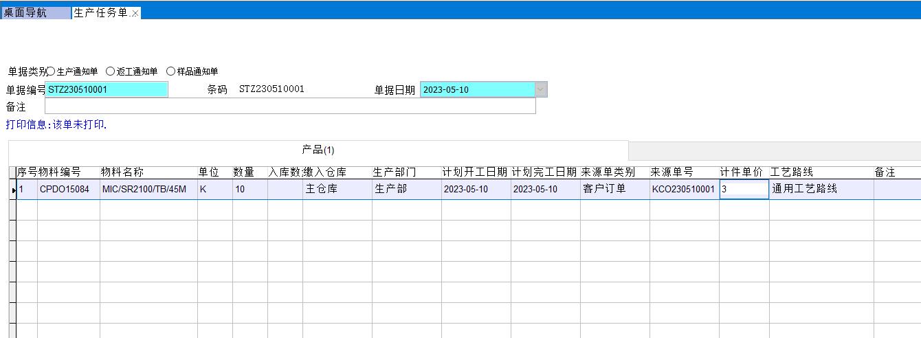 新建生產任務單,輸入產品計件單價