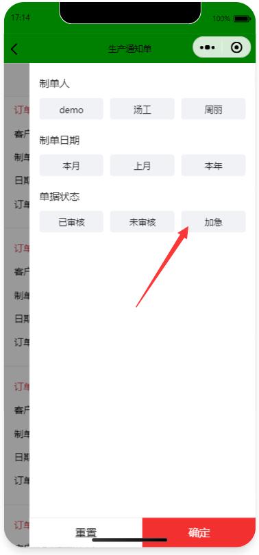 在手機端可以按加急查詢所有在制的生產單