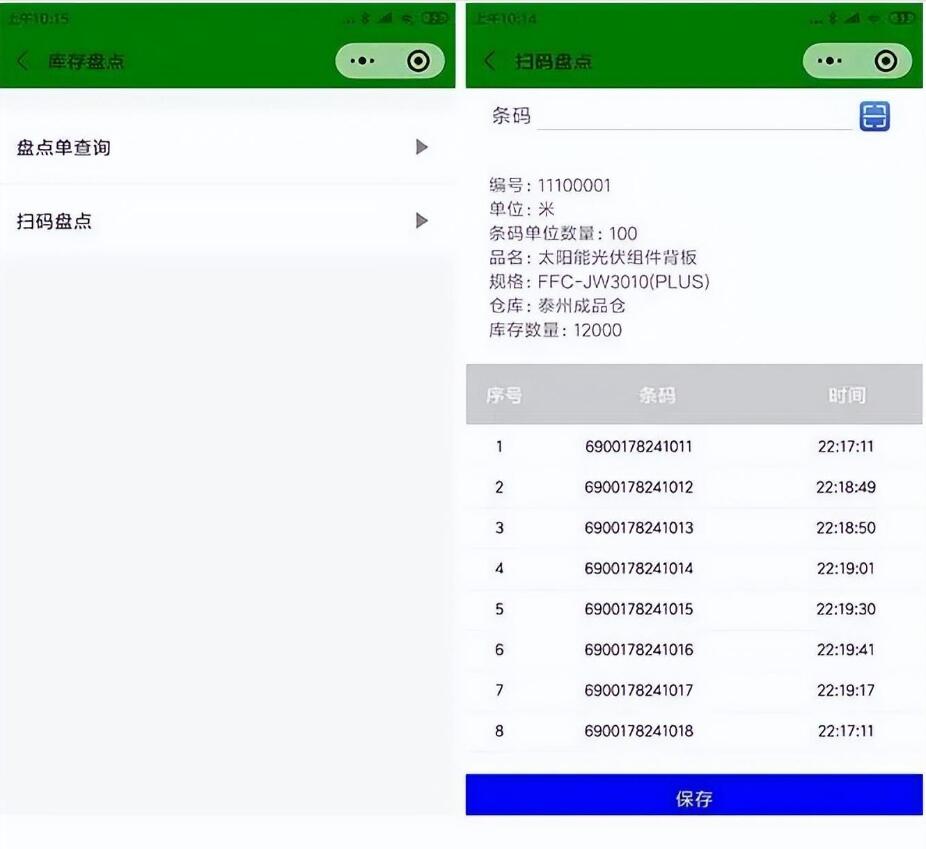 由于產成品上有條碼標簽,因此產成品的庫存盤點可以使用手機掃碼盤點