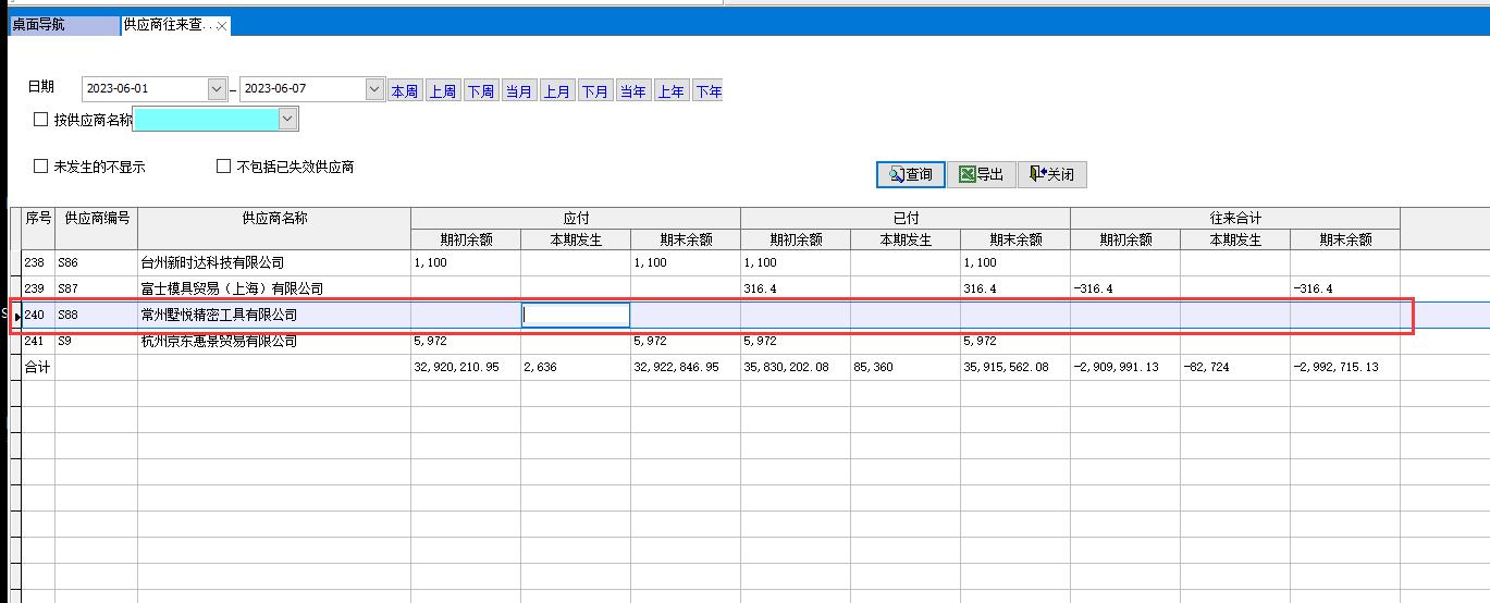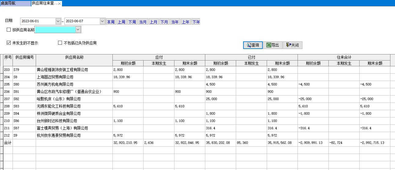 供應(yīng)商往來查詢是反應(yīng)一段時間內(nèi)的供應(yīng)商應(yīng)收金額和已付金額的匯總表,通常都是按月來進(jìn)行統(tǒng)計