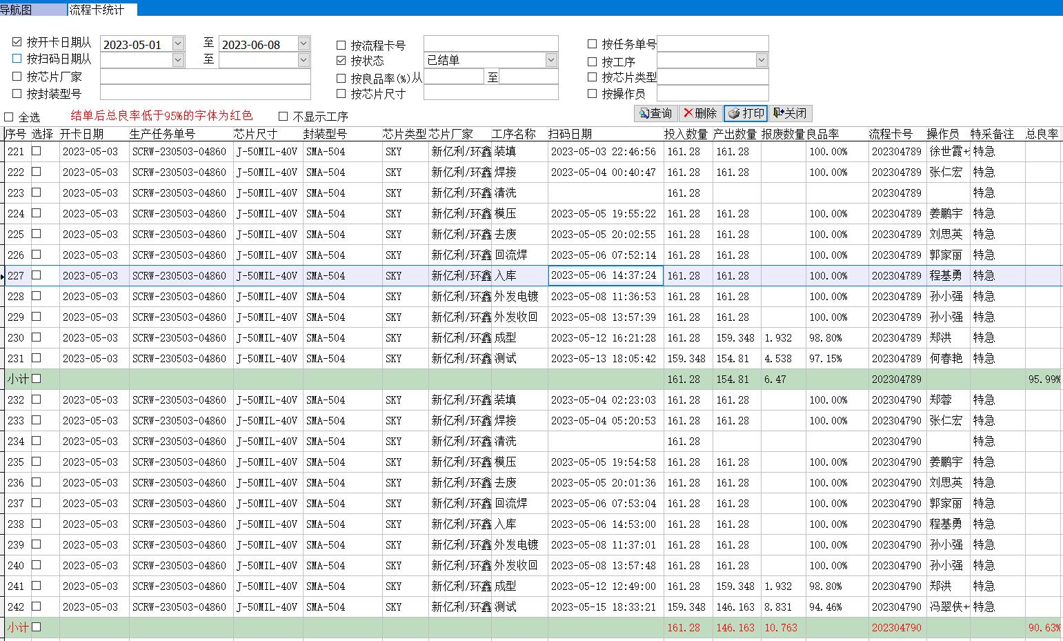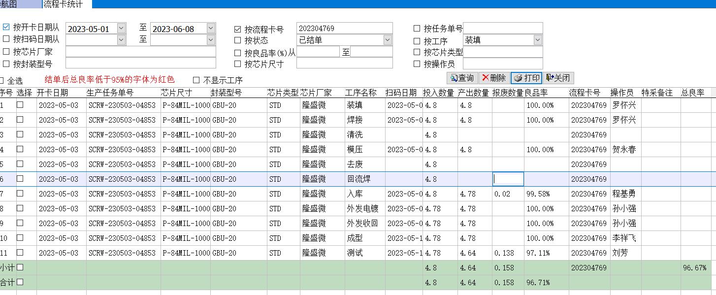 流程卡統(tǒng)計是反應(yīng)掃碼報工結(jié)果的統(tǒng)計表