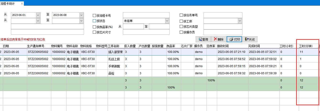 在工藝路線中設(shè)置的工時,數(shù)據(jù)直接抓取到流程卡統(tǒng)計中