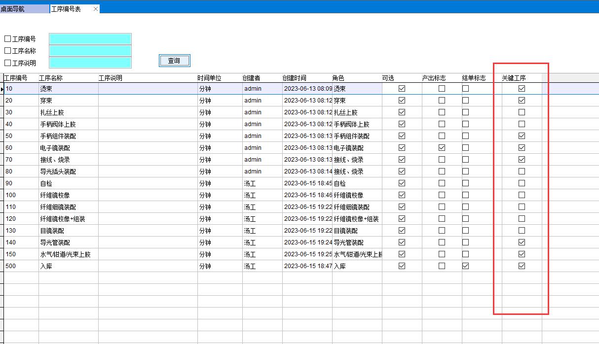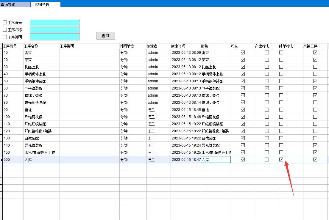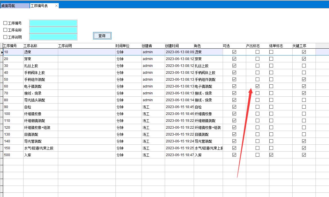 設置某工序為產出標志