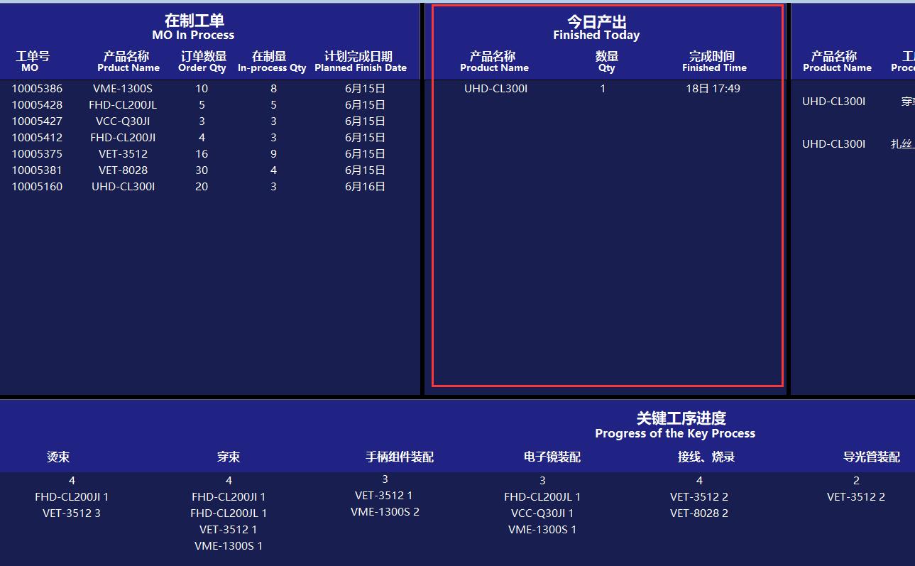 關鍵工序進度是實時顯示關鍵工序正在生產中的數量,即在制量