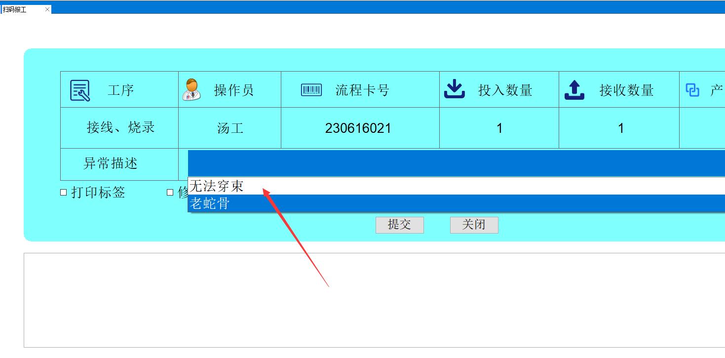 掃碼報工時填寫異常記錄
