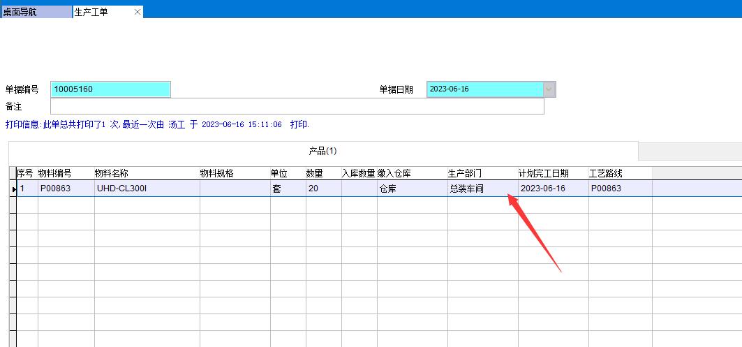 2、下工單時指定生產部門