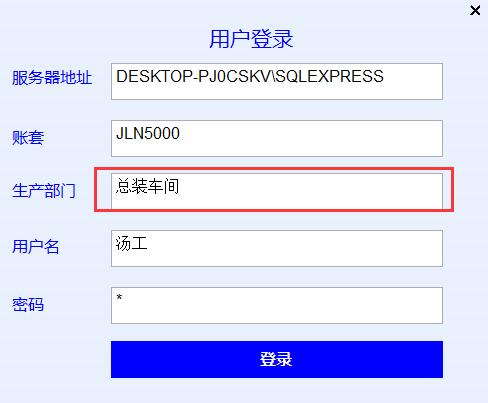 3、生產看板登錄時填寫生產部門即可,如果不填寫部門就是顯示所有工單的數據