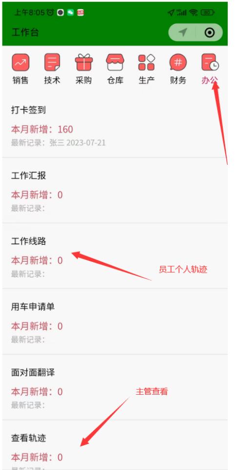 打開路徑:【首頁】-【工作臺】-【辦公】-【查看軌跡】