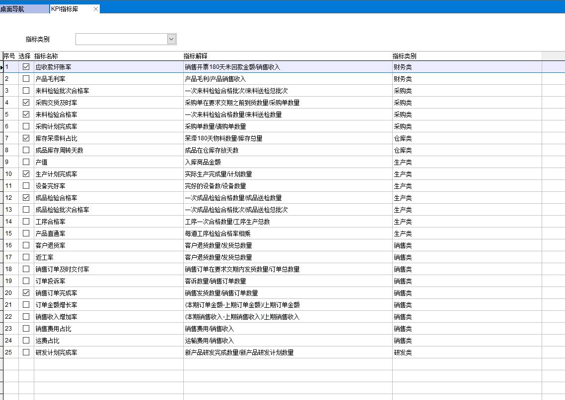 本文中涉及的KPI指標并非企業所有KPI指標,僅羅列出能從ERP系統中自動生成數據的KPI指標。
