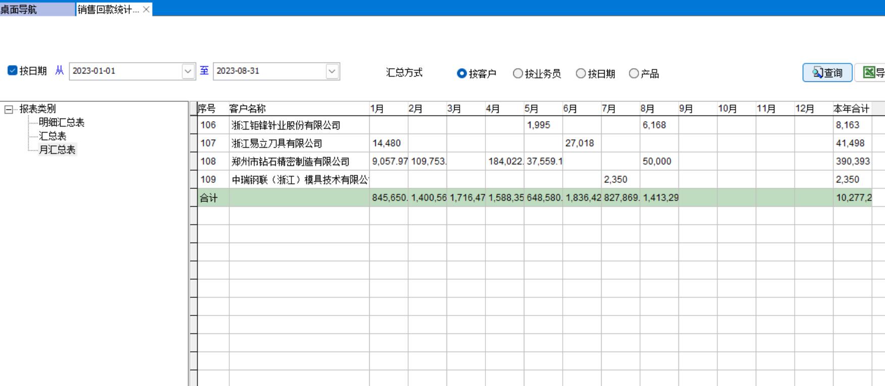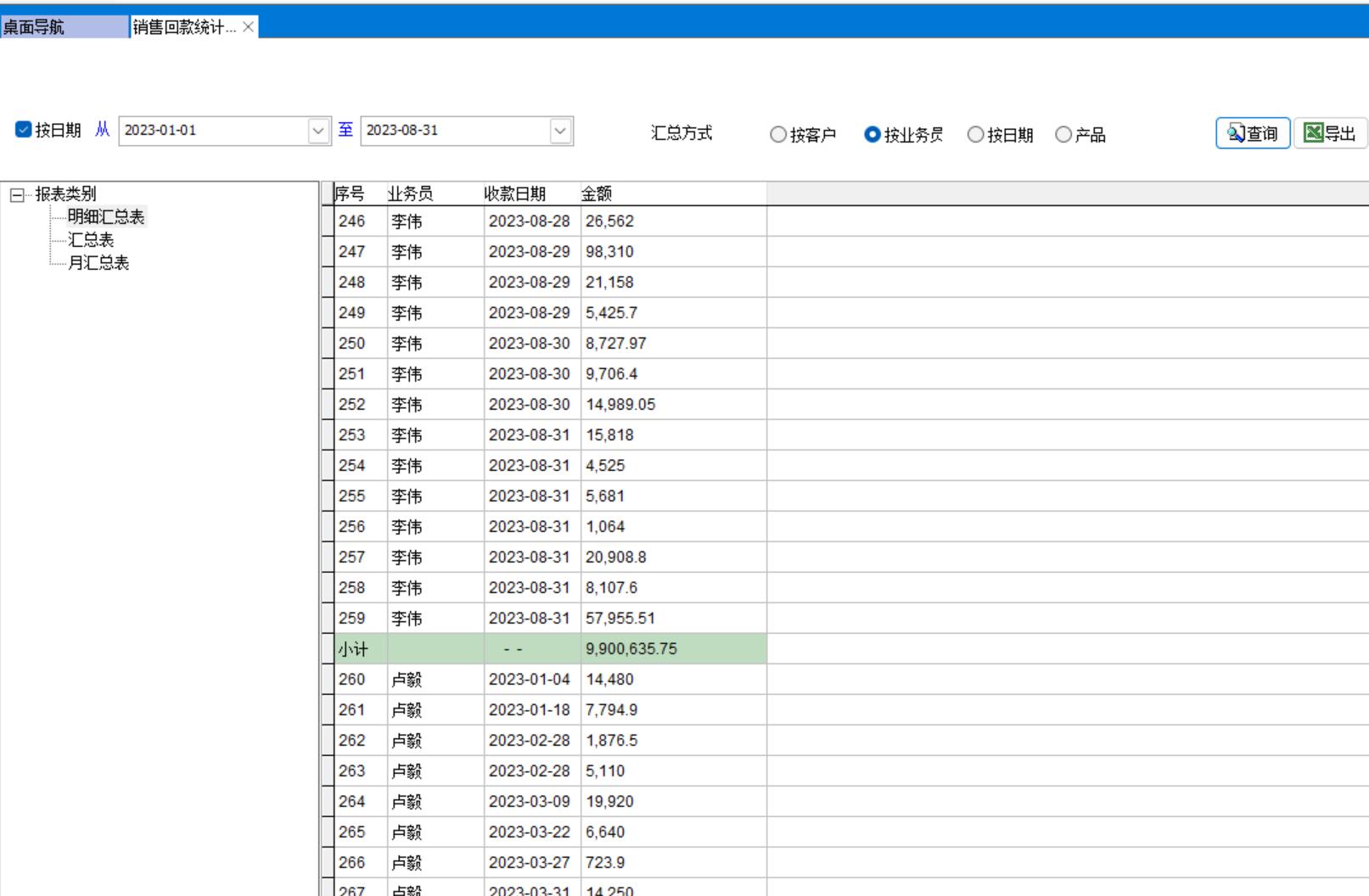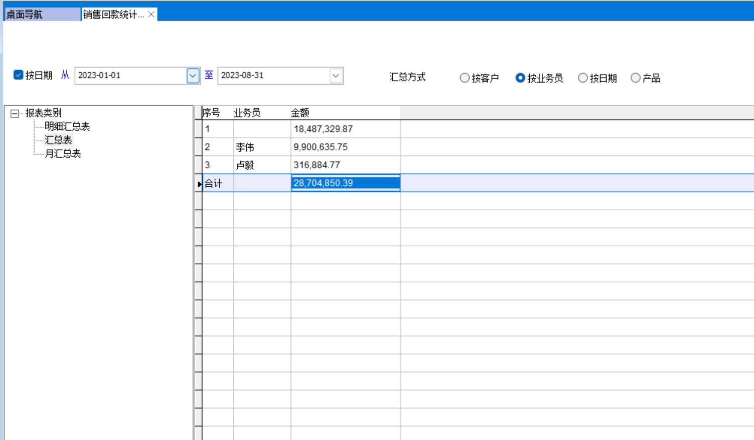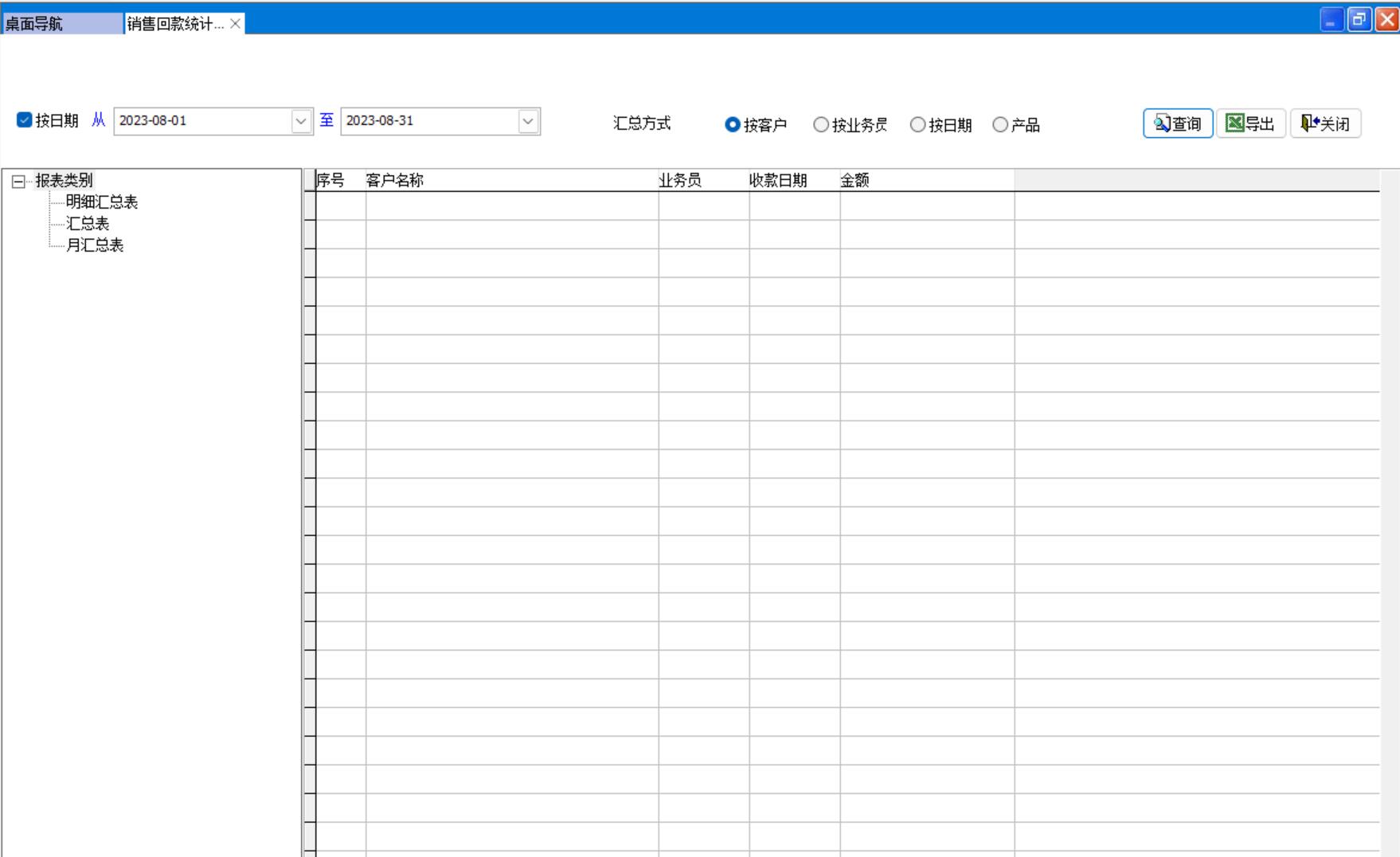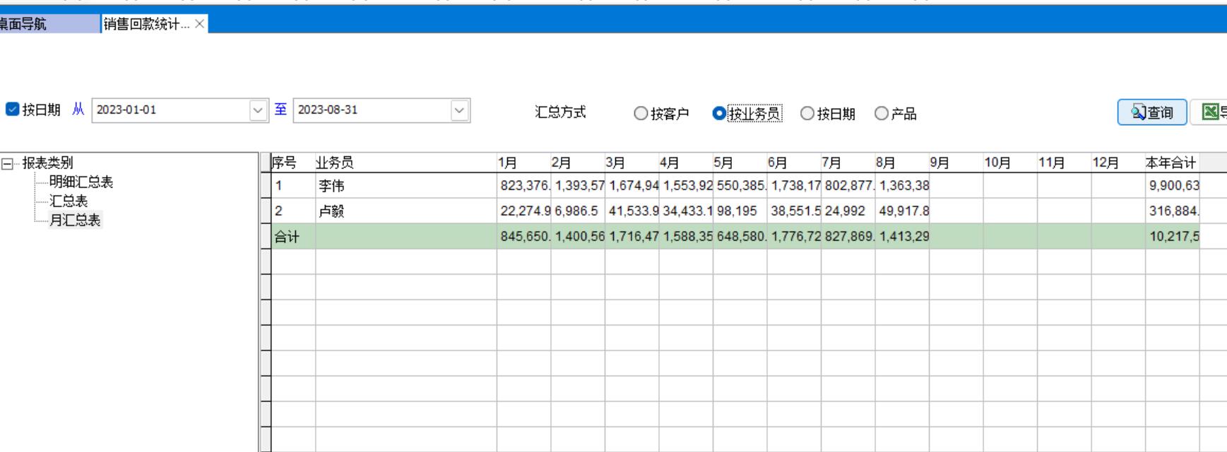 打開路徑:【主菜單】-【銷售】-【報表】 -【銷售回款統計表】