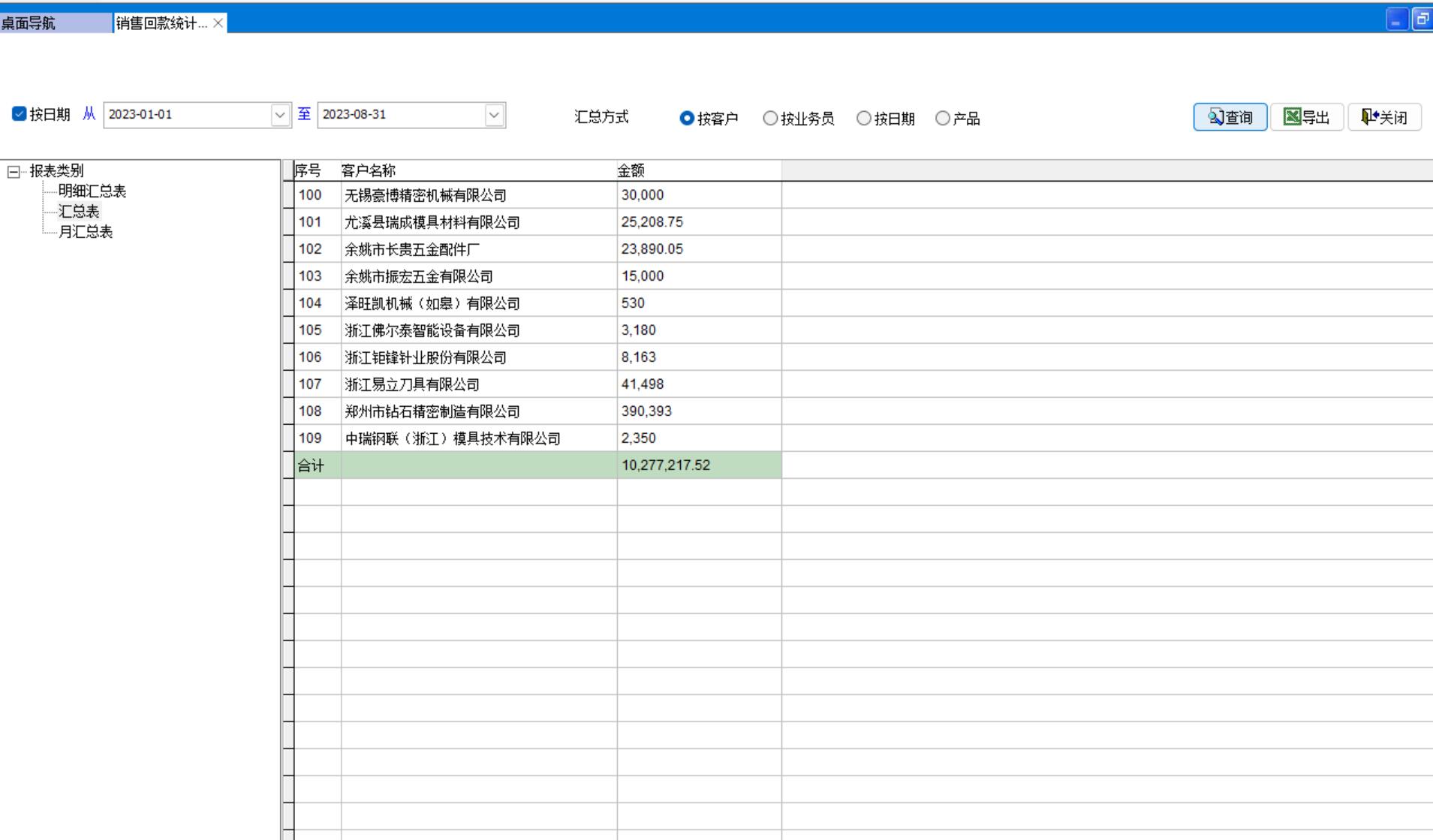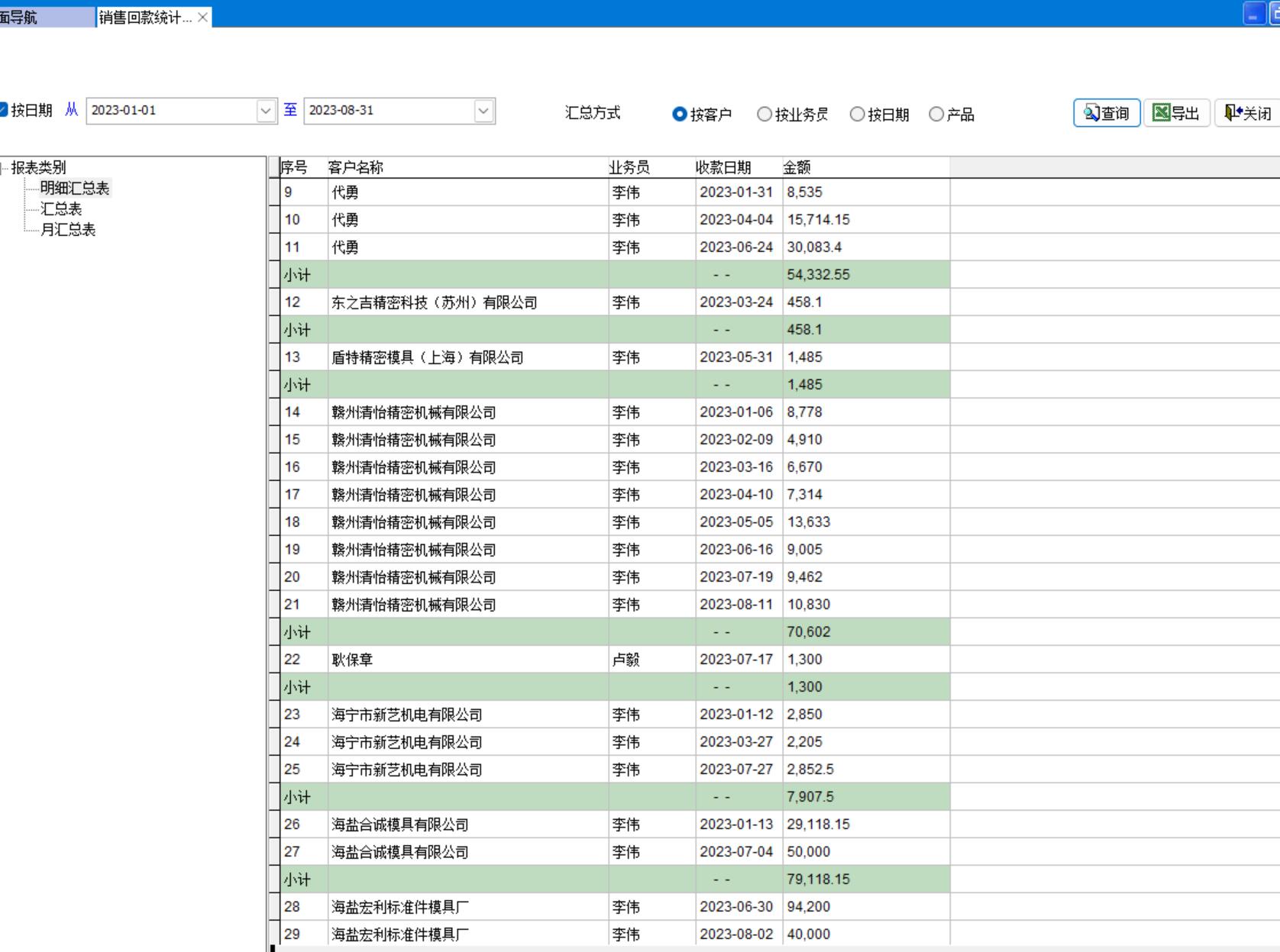 銷售回款統計表僅對銷售收款單按各種維度進行統計分析,如果銷售收款需要結合訂單、開票、發貨金額、賬期等信息的可以查看本系統的其他報表。