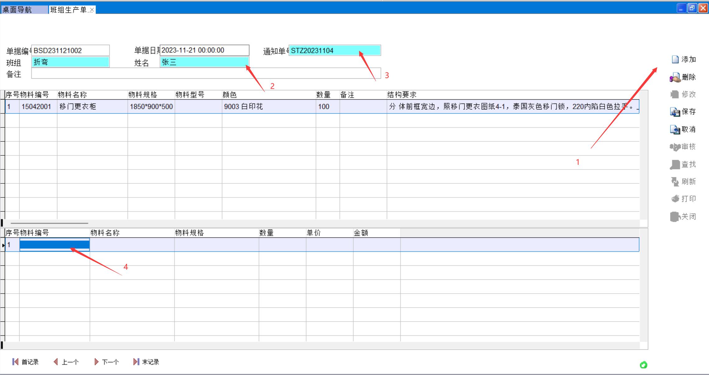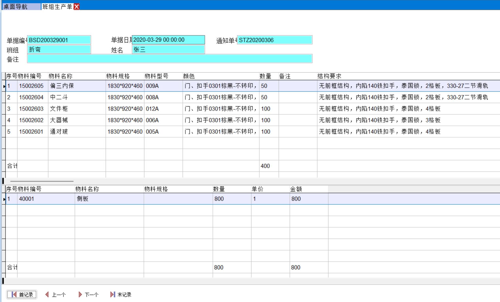 生產通知單中結構要求等信息也會傳遞到班組生產單,第4步是領料信息