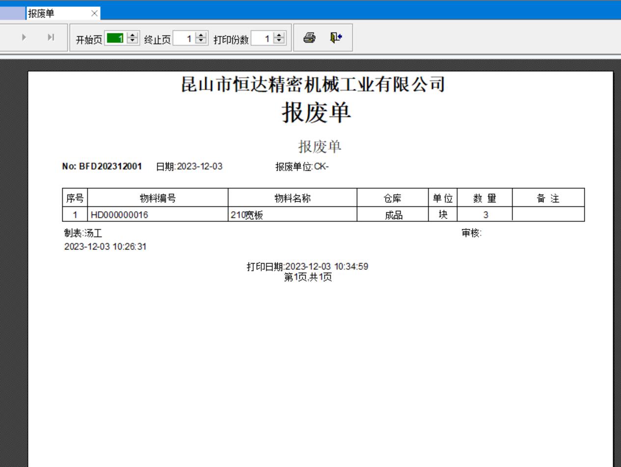 報廢單是出庫單,報廢單完成后庫存數量會減少