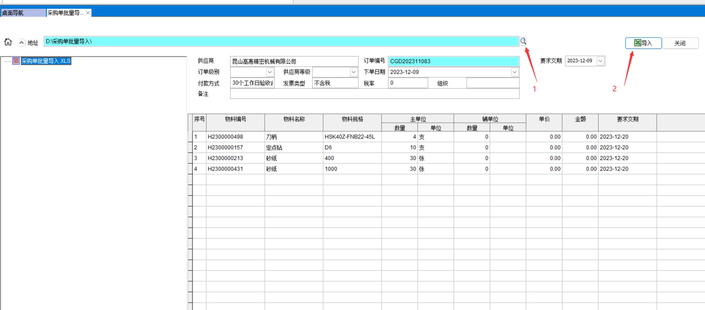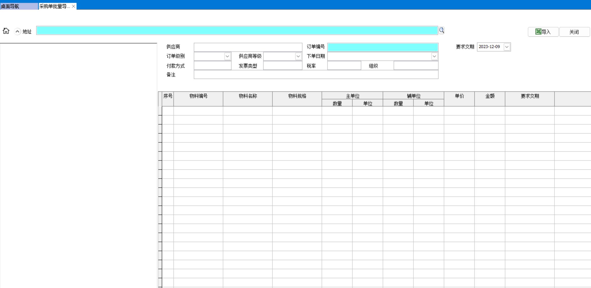 打開路徑:【主菜單】-【采購】-【采購單】 -【采購單批量導入】