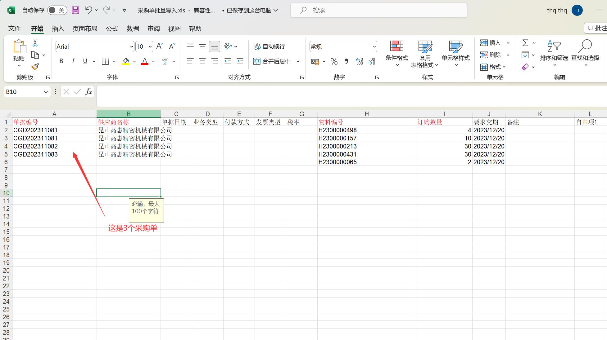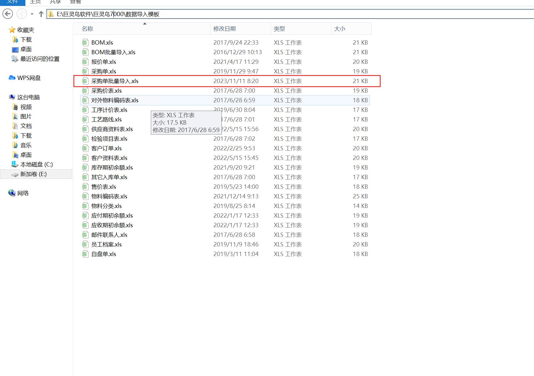 2、所有采購單導入模版放到目錄中,可以是每個采購單一個excel文件,也可以一個文件多個采購單