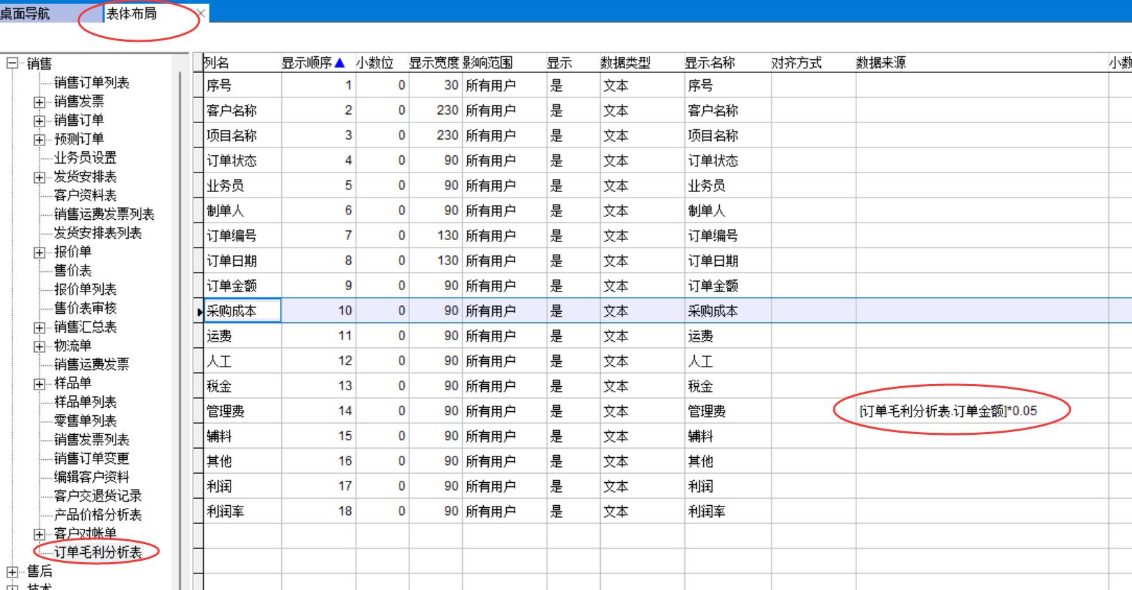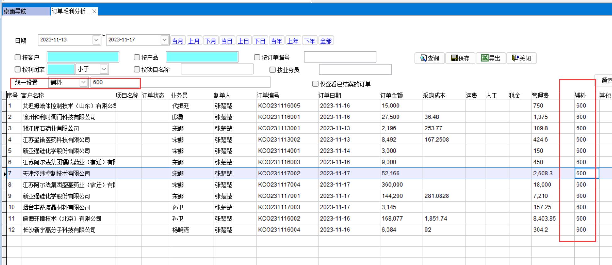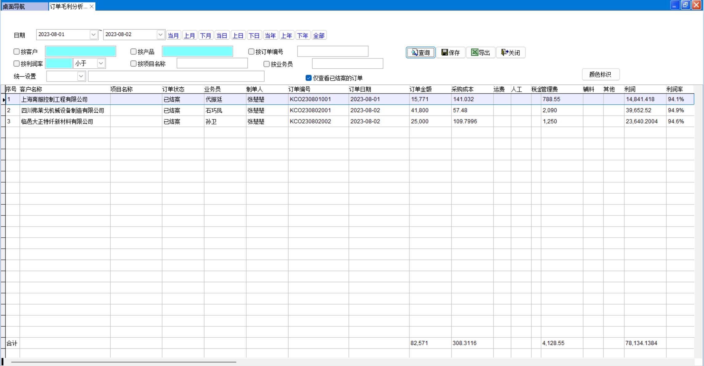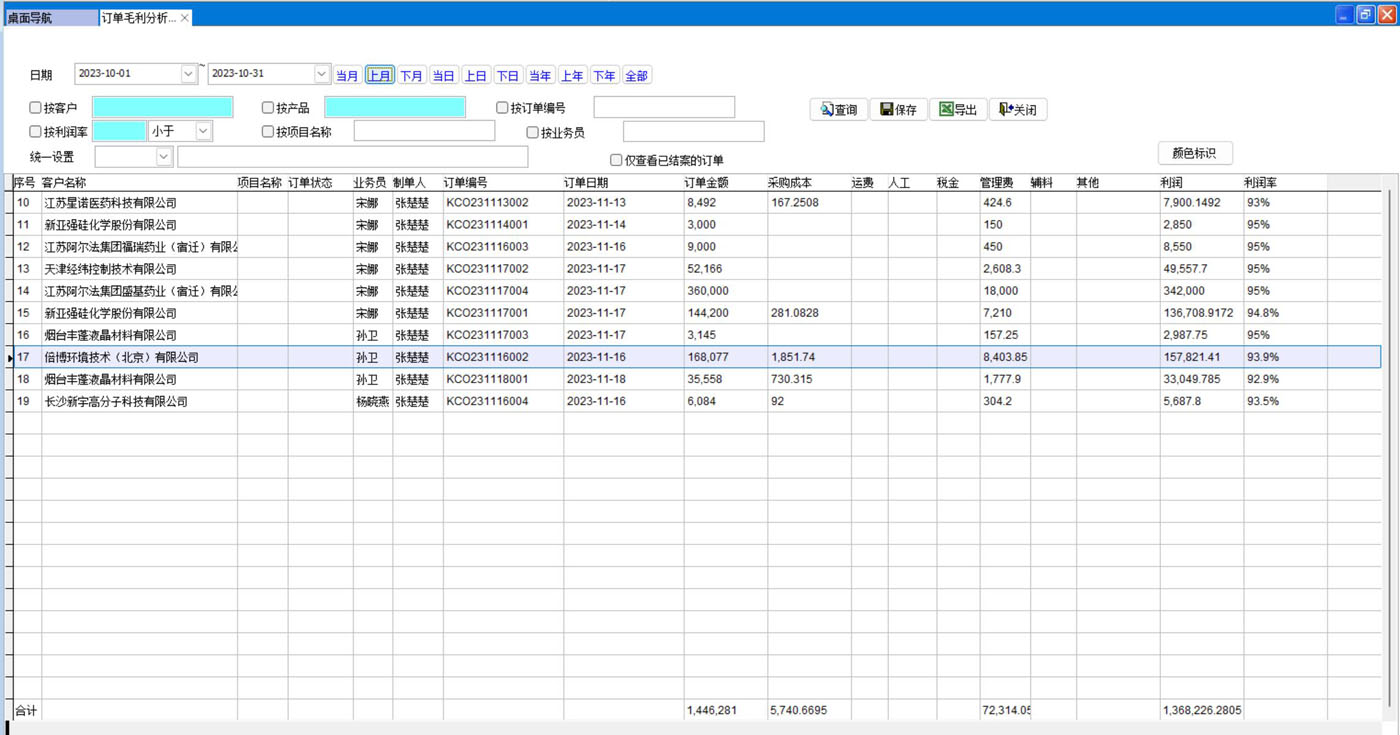 打開路徑:【主菜單】-【銷售】-【報表】-【訂單毛利分析表】