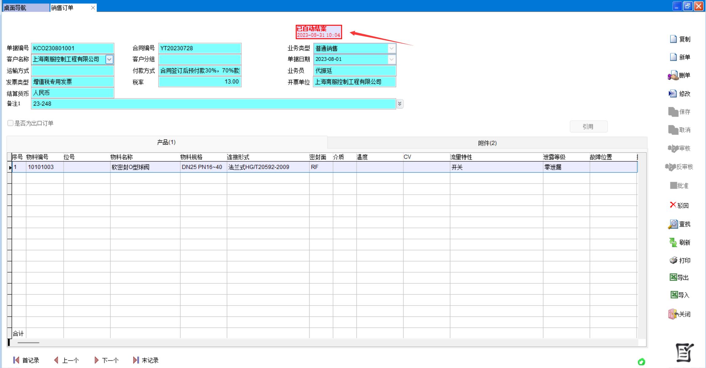 在銷售訂單中也能看到訂單狀態