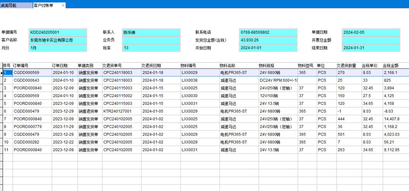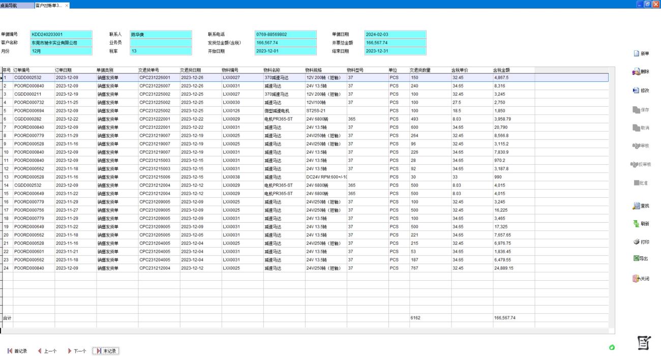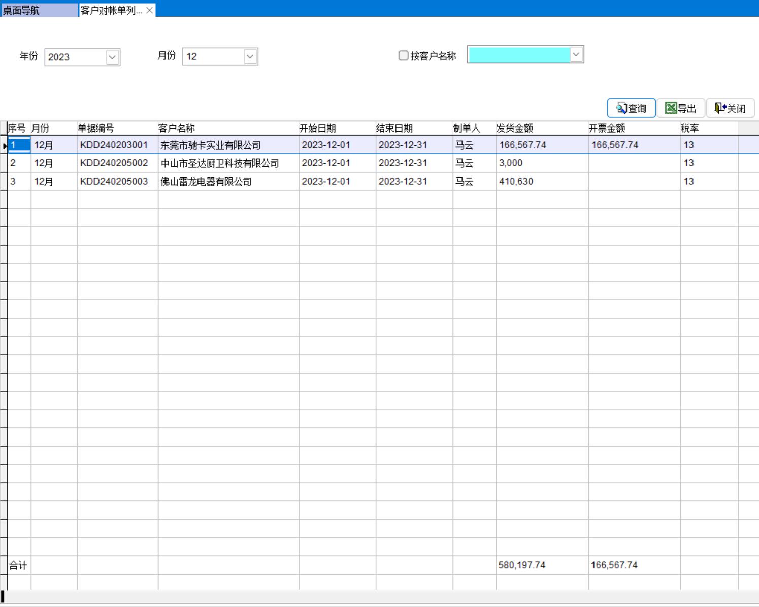 打開(kāi)路徑:【主菜單】-【銷(xiāo)售】-【客戶(hù)對(duì)帳單3】