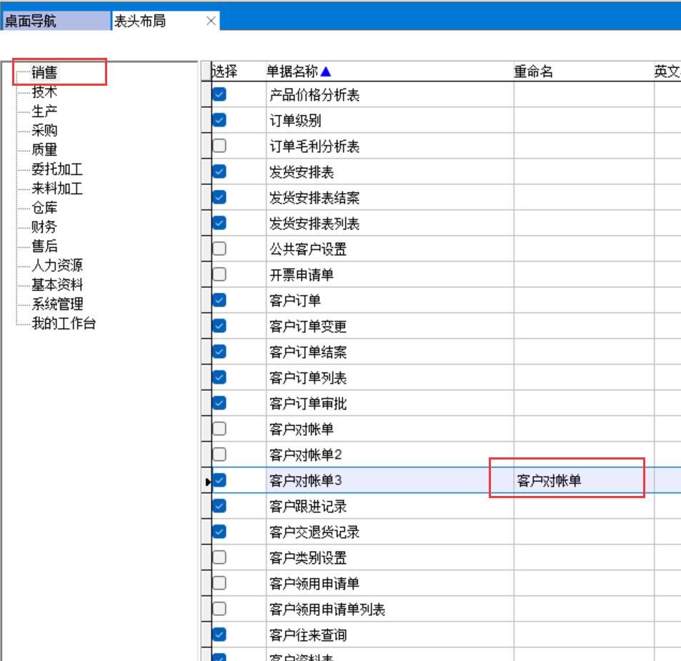 將默認(rèn)的客戶(hù)對(duì)帳單3改名為客戶(hù)對(duì)帳單