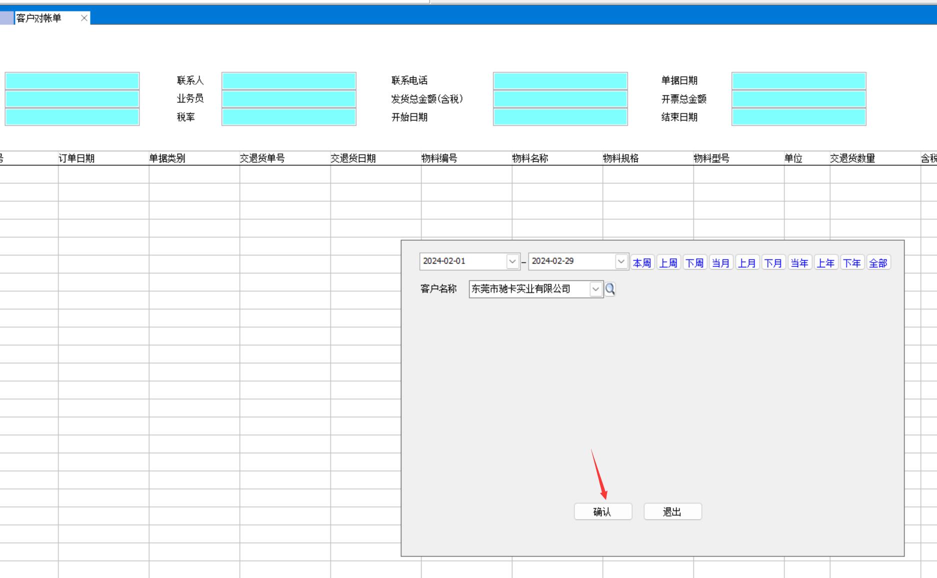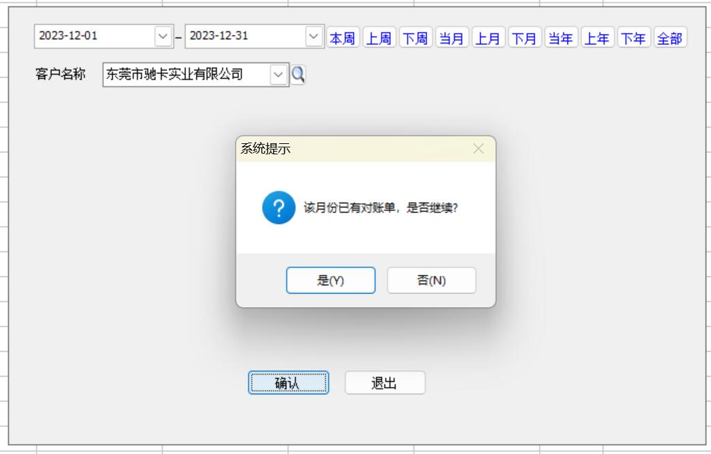 如果已有該月的對(duì)帳記錄會(huì)提示,不排除會(huì)有客戶(hù)一個(gè)月多次對(duì)帳的可能性