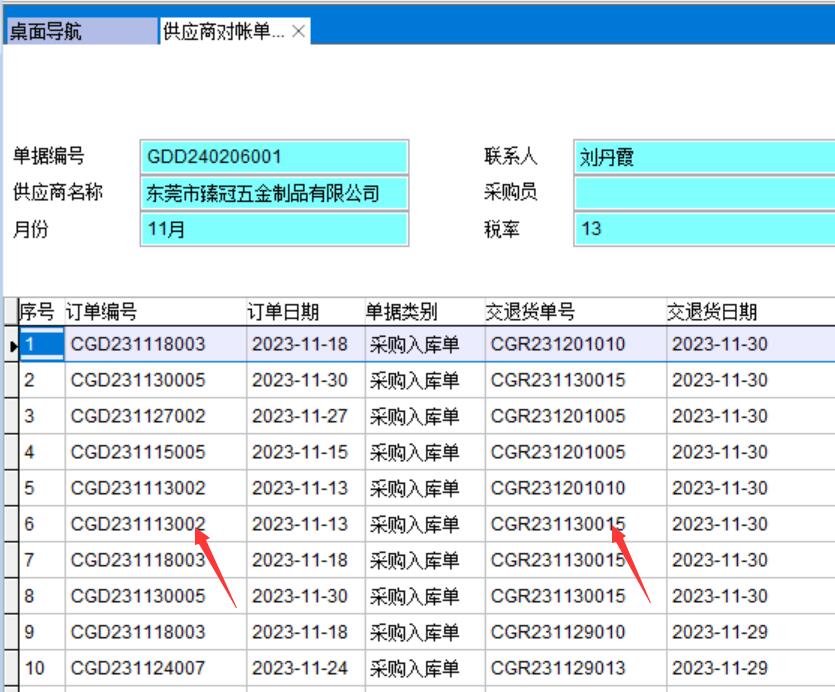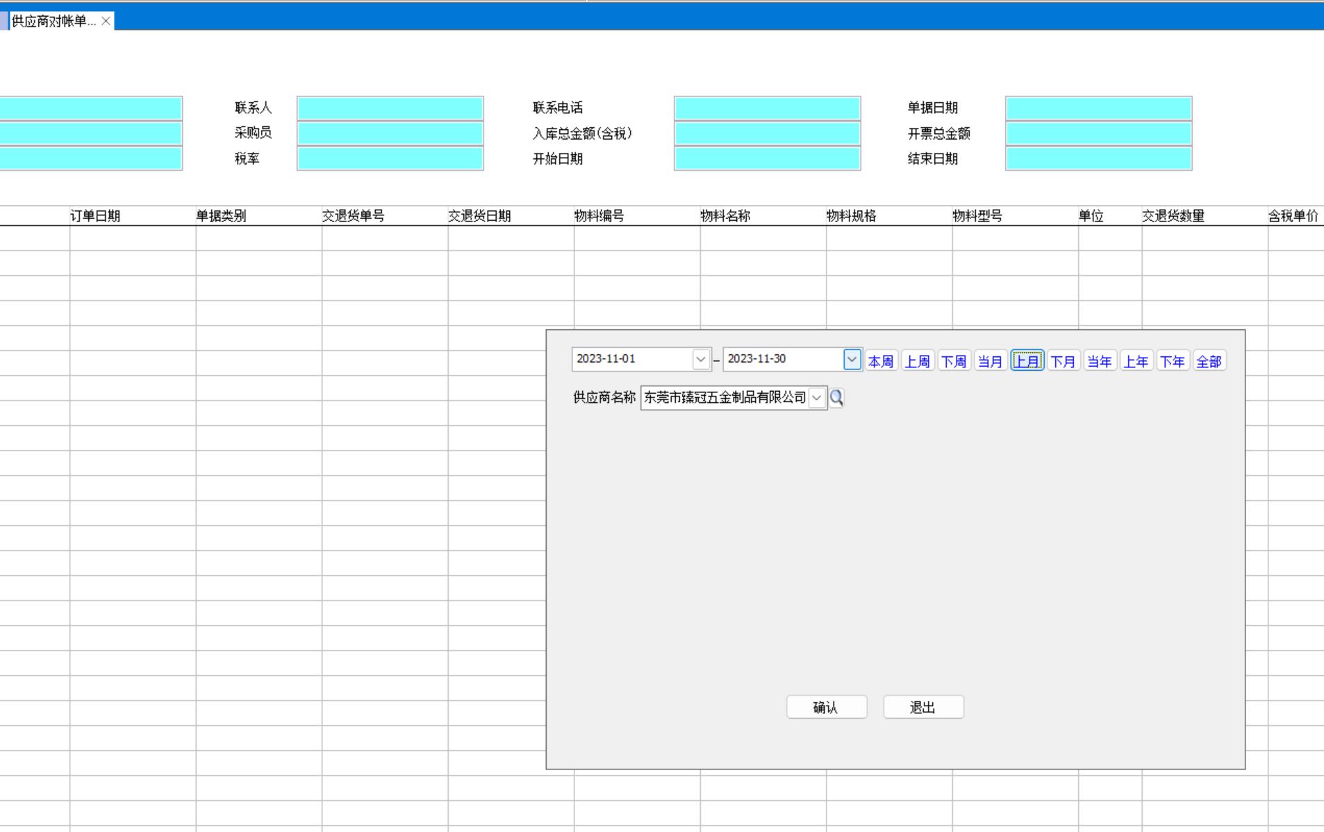 供應商對帳單用于記錄該時間區間內供應商交退貨記錄