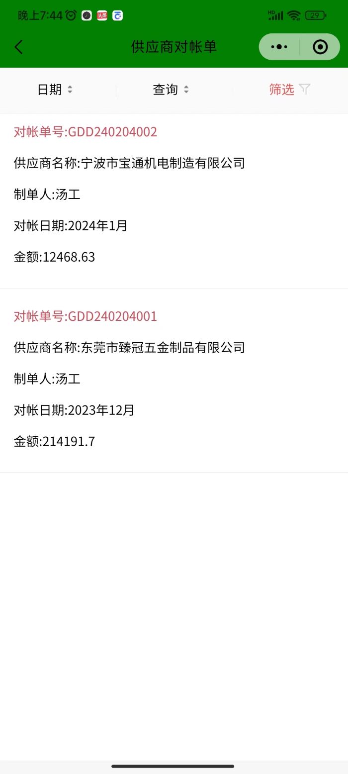 1、與供應商對賬,并保存對賬單。對賬單保存后相關單據不能再被修改
