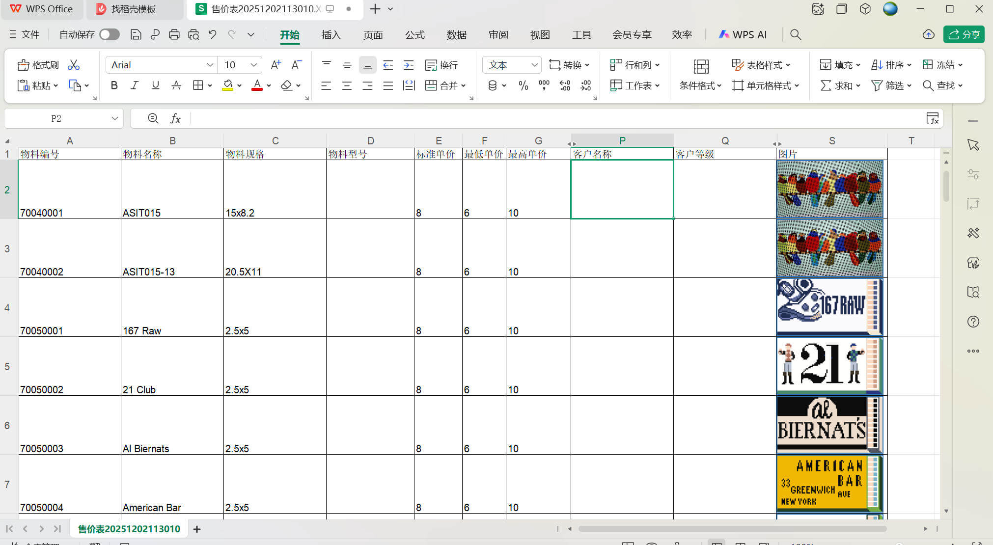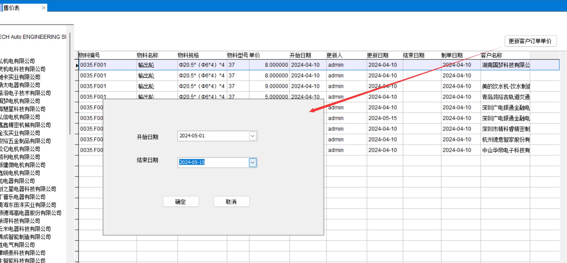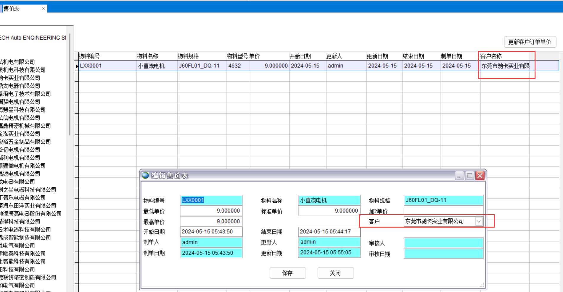 做售價表時指定客戶名稱