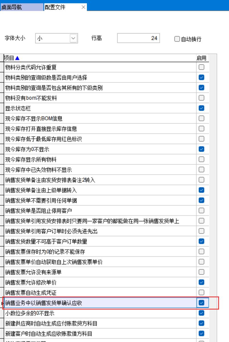 在配置文件中勾選銷售業(yè)務(wù)中以銷售發(fā)貨單確認(rèn)應(yīng)收