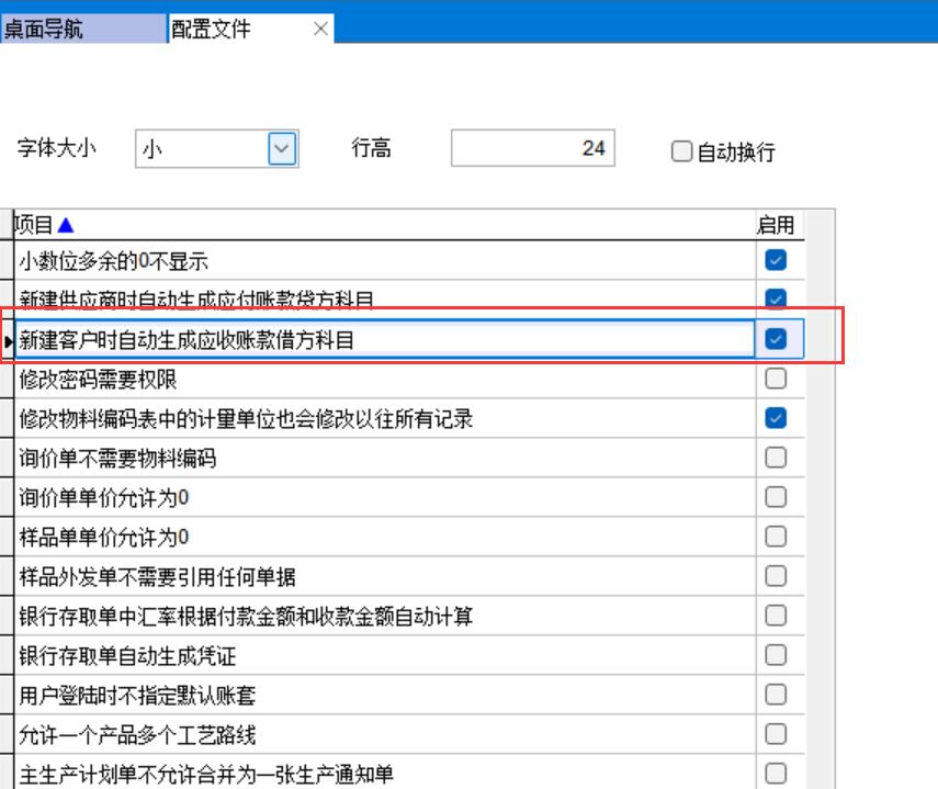 配置文件中勾選新建客戶時(shí)自動(dòng)生成應(yīng)收賬款借方科目,設(shè)置后當(dāng)新建客戶時(shí)會(huì)自動(dòng)生成三級(jí)科目