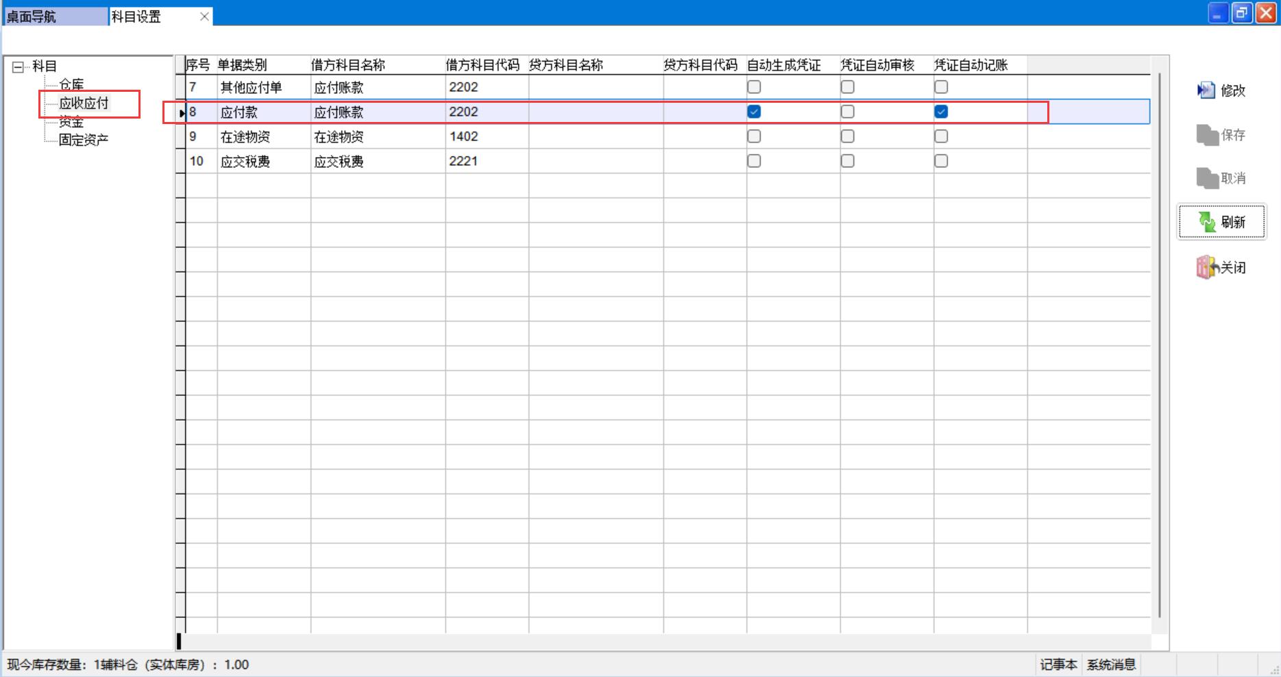 采購付款單要能自動生成憑證需要正確的設置借貸科目。