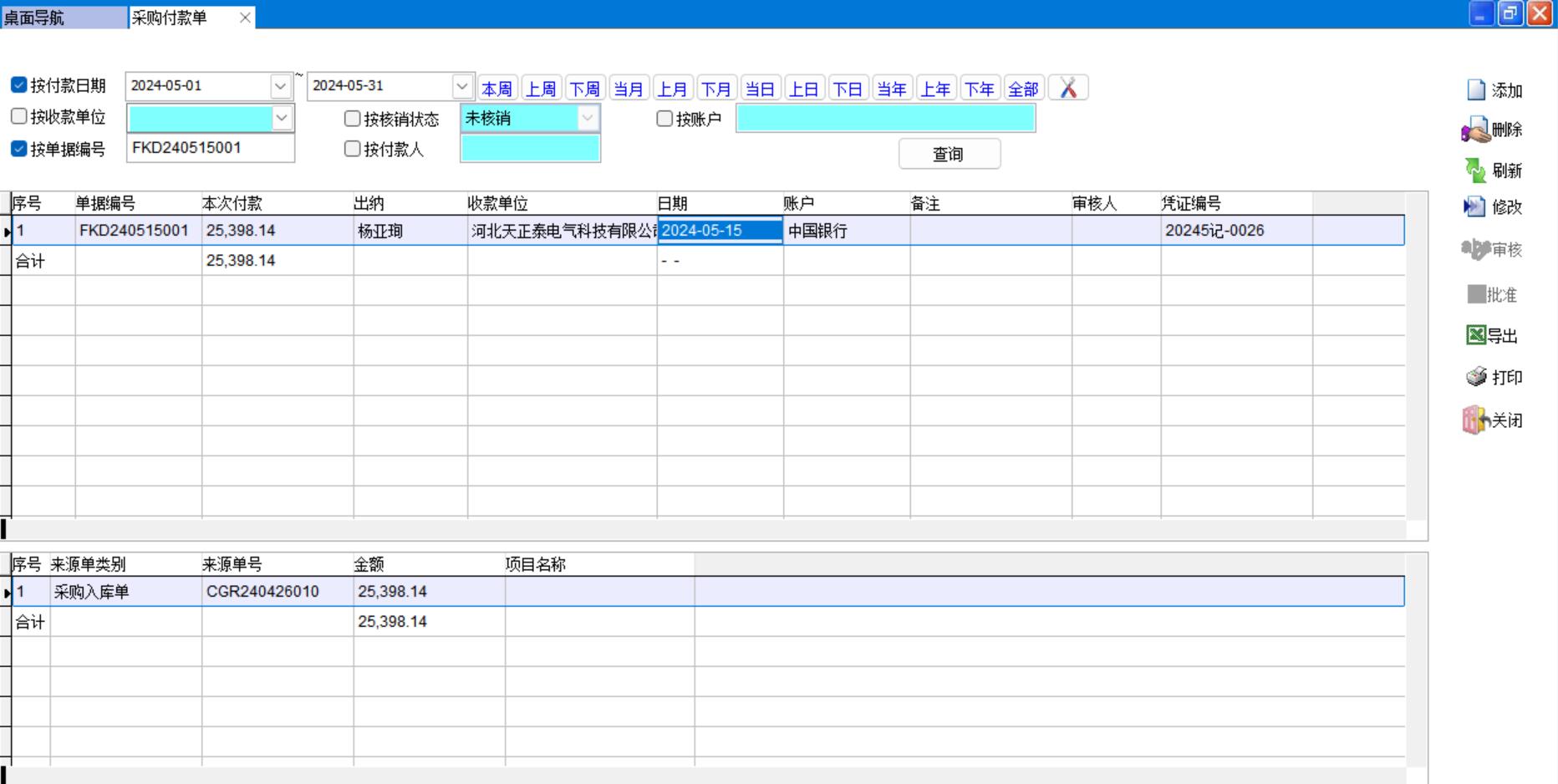 生成憑證前財務先確認所有采購付款單都已修改完成。