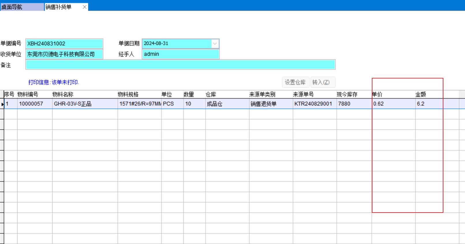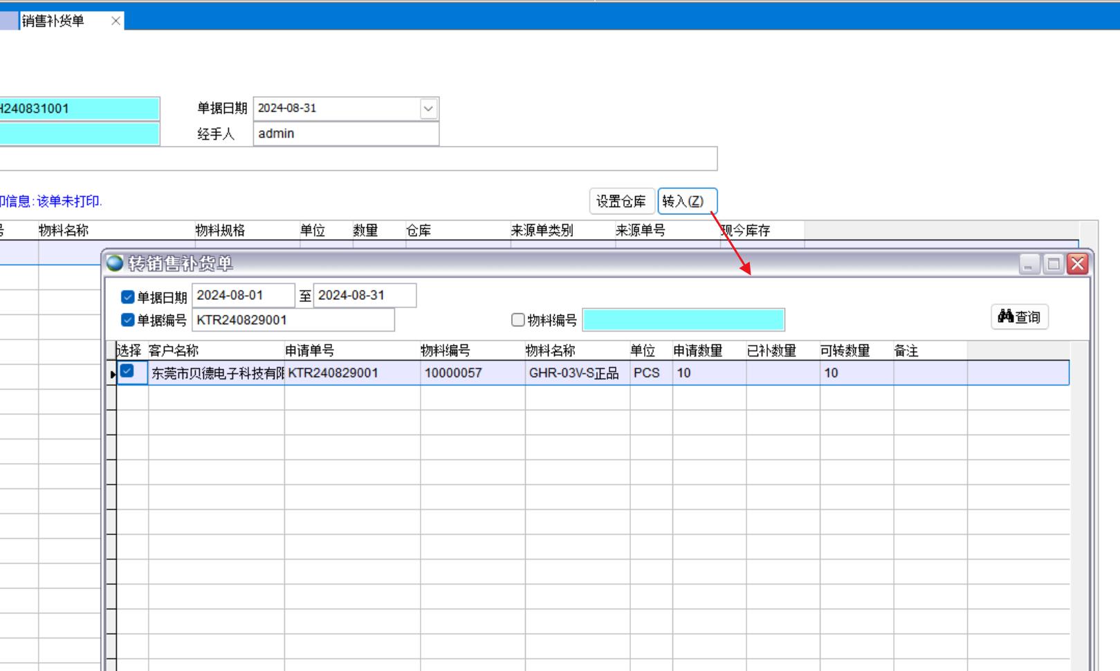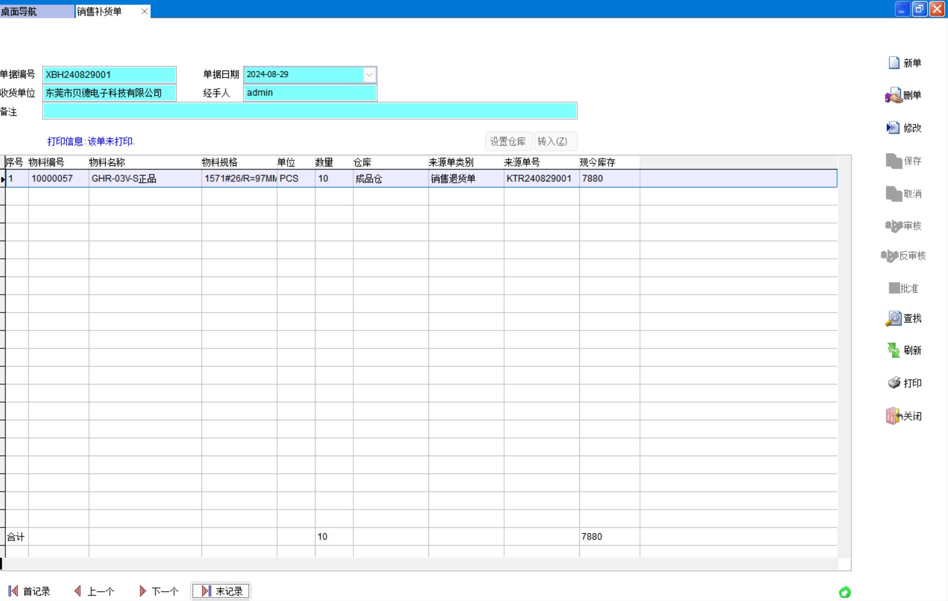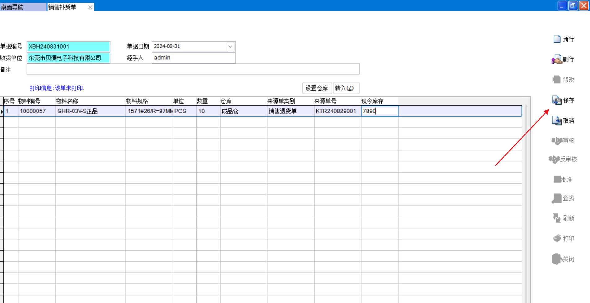 打開路徑:【主菜單】-【倉庫】-【出庫單】-【銷售補貨單】