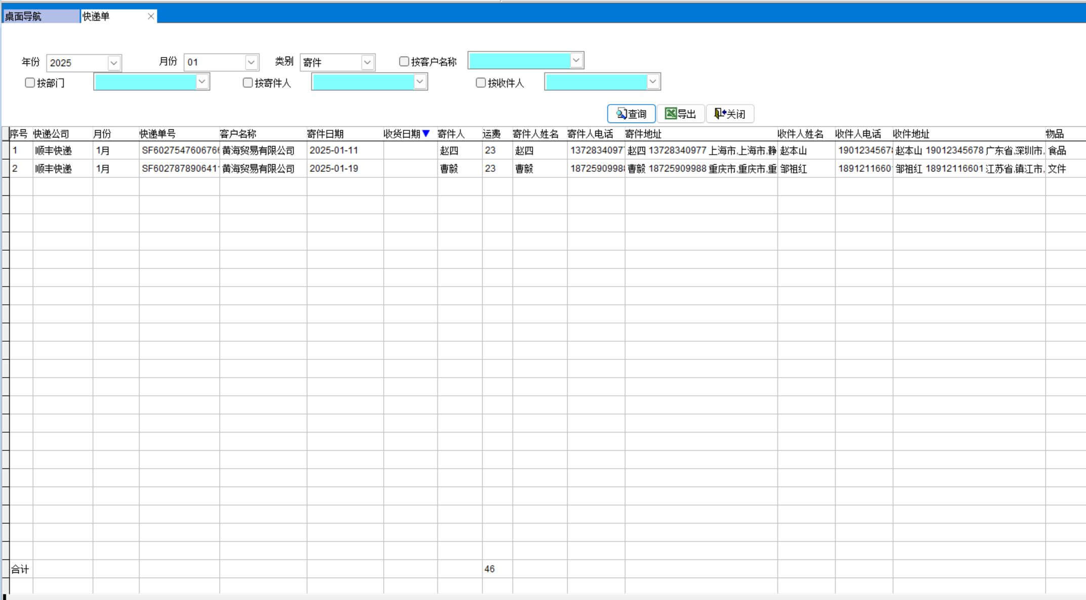 打開路徑:【主菜單】-【銷售】-【快遞單】 -【快遞單】