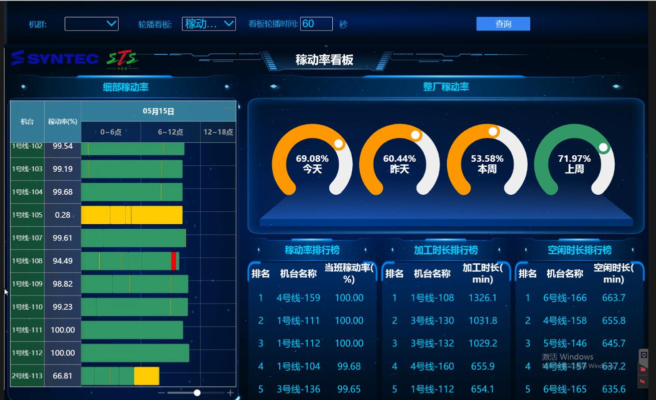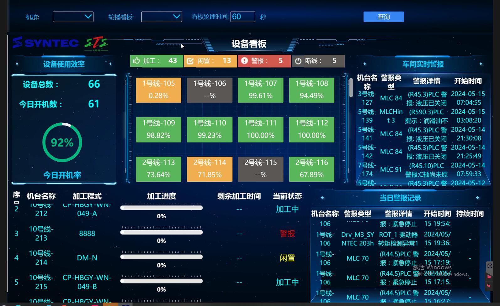 設(shè)備開機(jī)率、設(shè)備稼動率、設(shè)備報警記錄、當(dāng)前正在加工的程式。