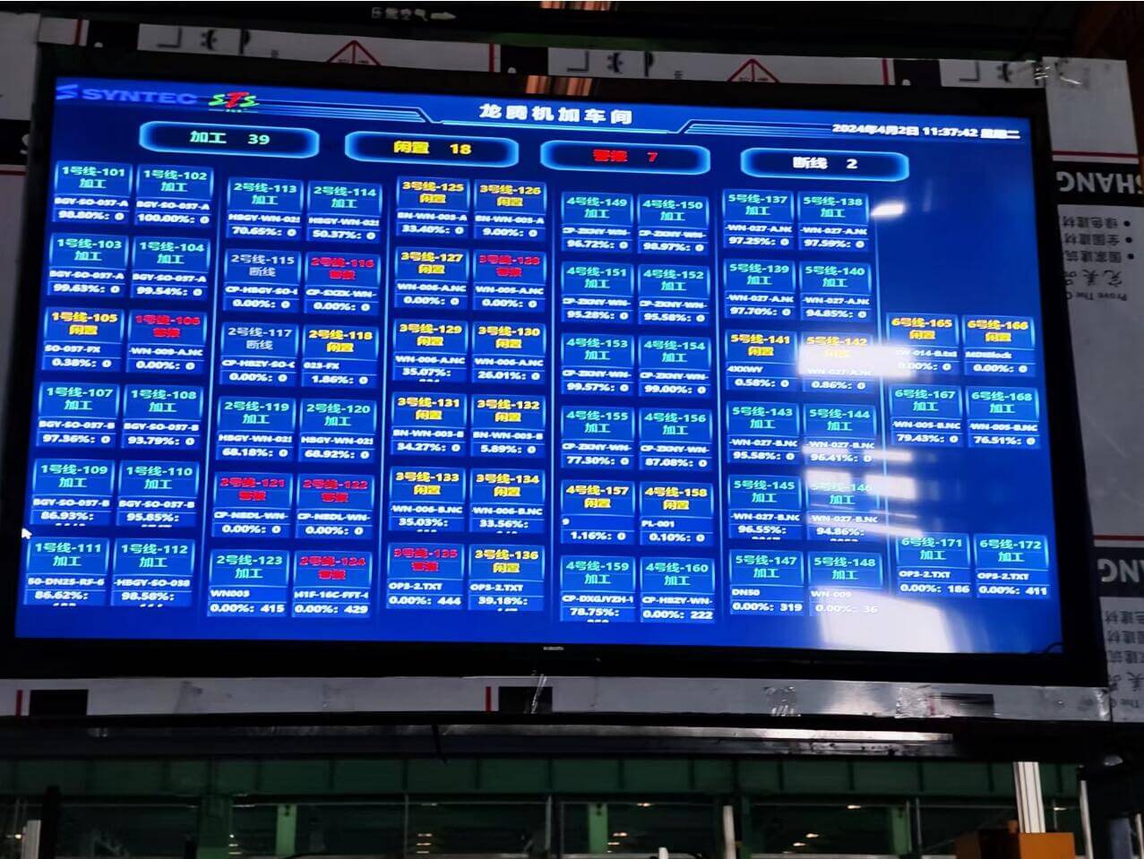 需要在每臺設(shè)備上安裝數(shù)據(jù)采集盒,通過數(shù)據(jù)采集盒將設(shè)備數(shù)據(jù)實(shí)時讀取到數(shù)據(jù)庫,再通過看板軟件展現(xiàn)到電子看板上