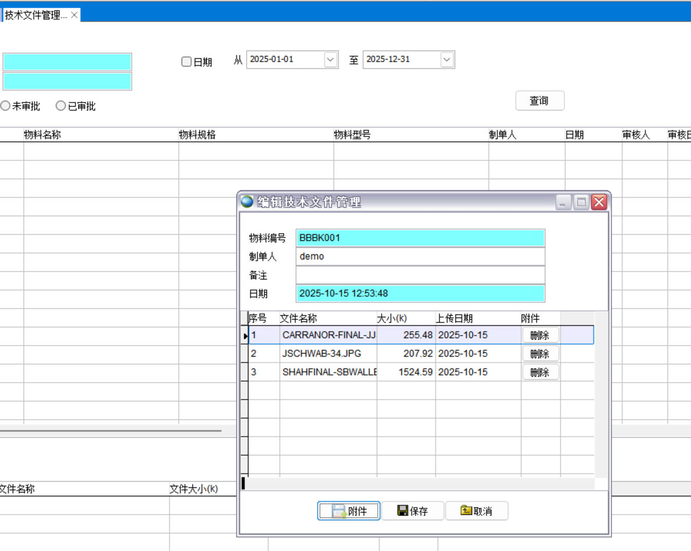 2、技術資料室需要文件名稱,可以和物料編號無關,技術文件管理是和物料編號綁定