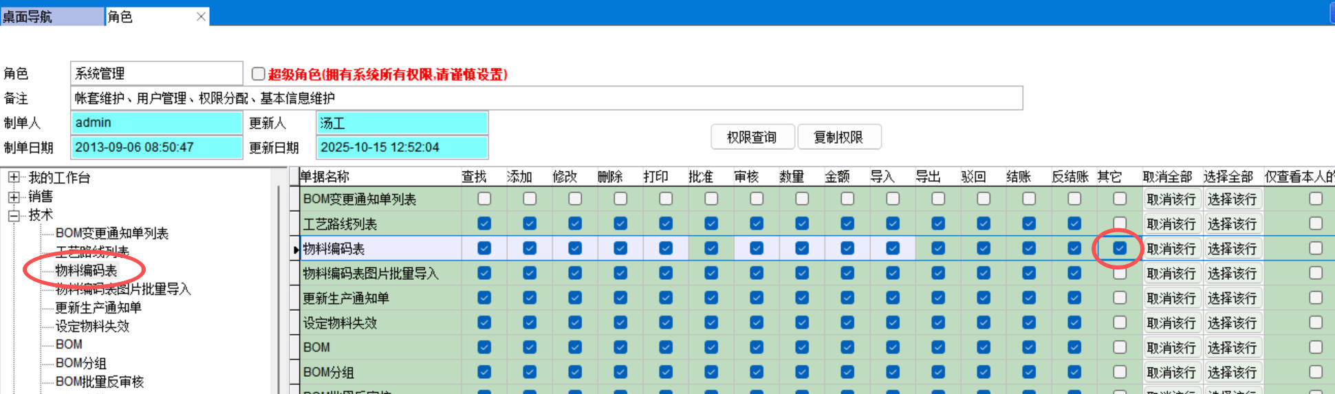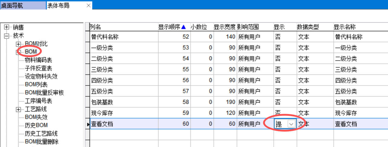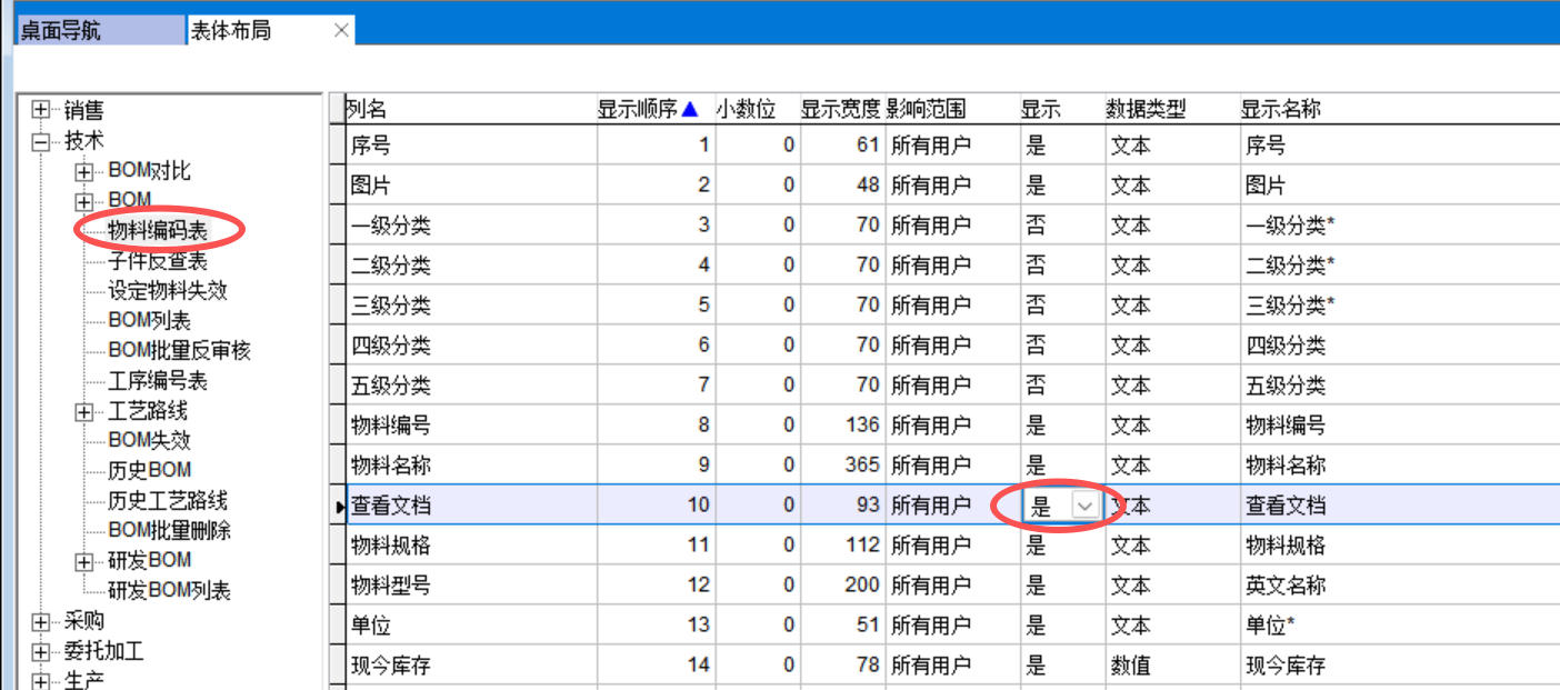 設置后,如果張三屬于設計出版部,在物料編碼表和BOM中查看文檔就能看到所有技術文件,否則只能看到保密文件以外的技術文件。