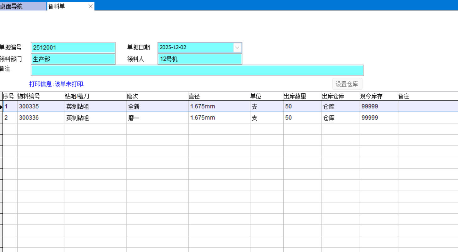 4、車間完成取料后在相同的備料單上點批準,取料看板上該取料信息消除,整個取料工作完成