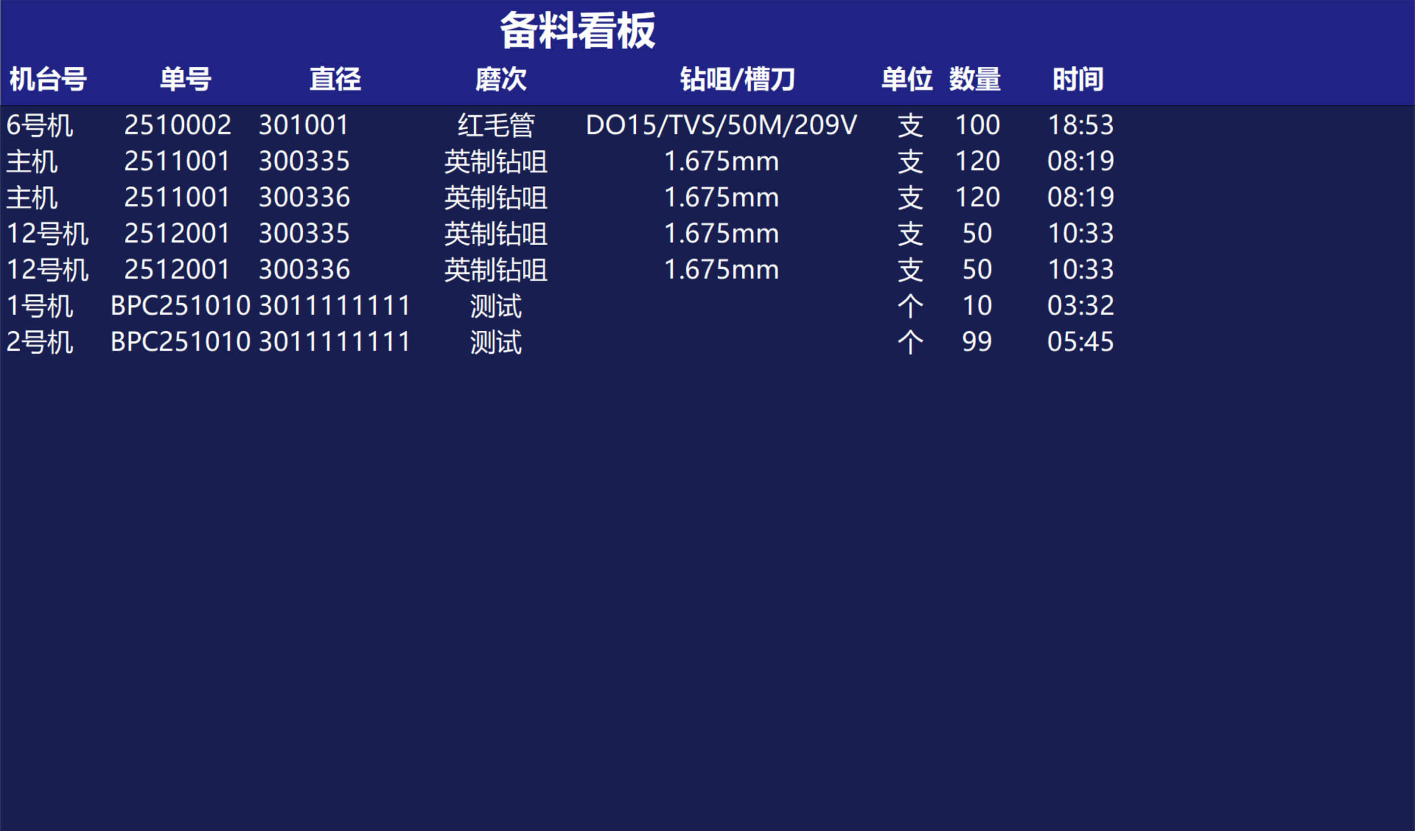 3、審核后在備料看板上該備料信息就會消除,同時在車間的取料看板上會顯示該信息,同時語音播報提醒車間去取料