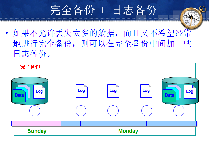 事務日志是一個單獨的文件,它記錄數據庫的改變,備份的時候只需要復制自上次備份以來對數據庫所做的改變,所以只需要很少的時間。為了使數據庫具有魯棒性,推薦每小時甚至更頻繁的備份事務日志。