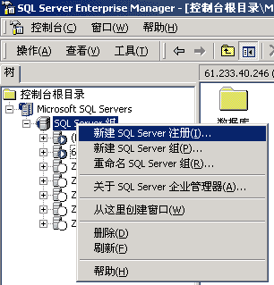 2、點SQL server 組右鍵,選擇新建SQL server 注冊,如下圖: