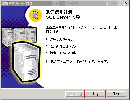 3、彈出SQL server 注冊向導,點下一步,如下圖: