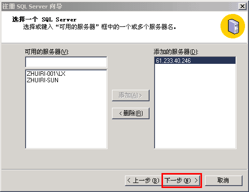 5、您添加的服務器IP即可增加到右側,然后點下一步,如下圖: