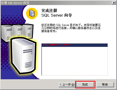 8、完成SQL server 注冊,點擊完成,如下圖: