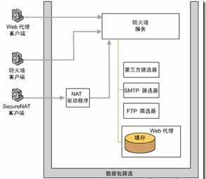 “防火墻客戶端”是已經(jīng)安裝并啟用防火墻客戶端軟件的計算機。來自防火墻客戶端的請求會定向到 ISA Server計算機上的防火墻服務(wù),以確定是否允許訪問。此后,可以使用應(yīng)用程序篩選器和其他插件對這些請求進行篩選。防火墻服務(wù)還可以緩存所請求的對象,或者從 ISA Server緩存提供對象。