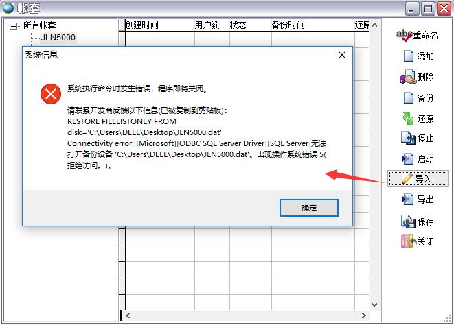 導(dǎo)入賬套出現(xiàn)上面錯誤是權(quán)限問題引起的,導(dǎo)入的文件不要放到桌面或系統(tǒng)盤,換個位置存放試下