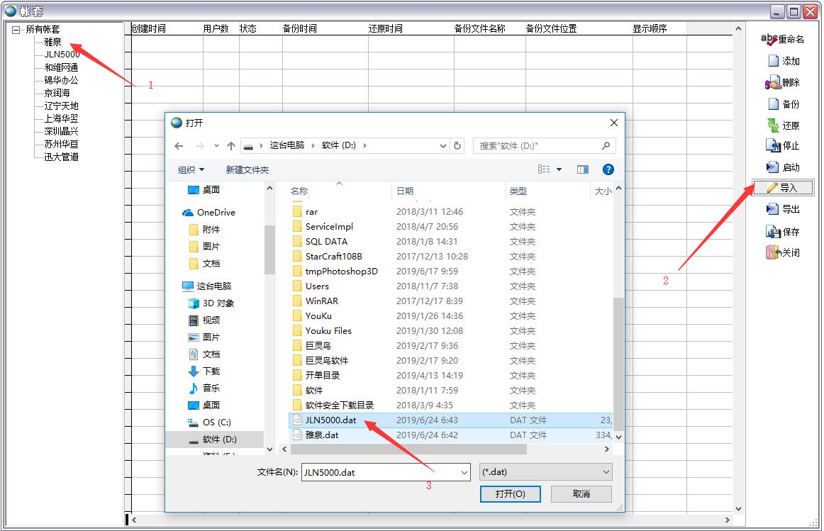 在B電腦上選擇要導(dǎo)入的帳套,在目錄中選擇此帳套文件執(zhí)行導(dǎo)入