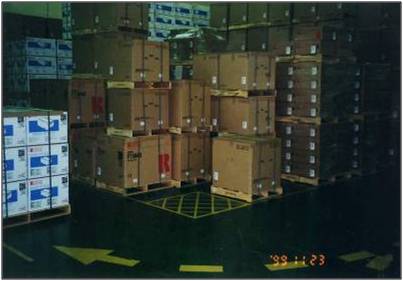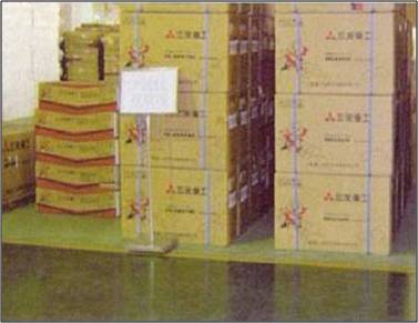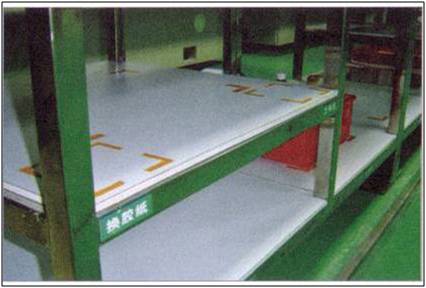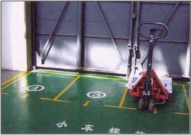 2.線形:已完成的合格品采用綠色實線(但倉庫區域一般使用黃色)。不合格品(不良品、廢品)用紅色實線。待檢查品用黃色虛線。